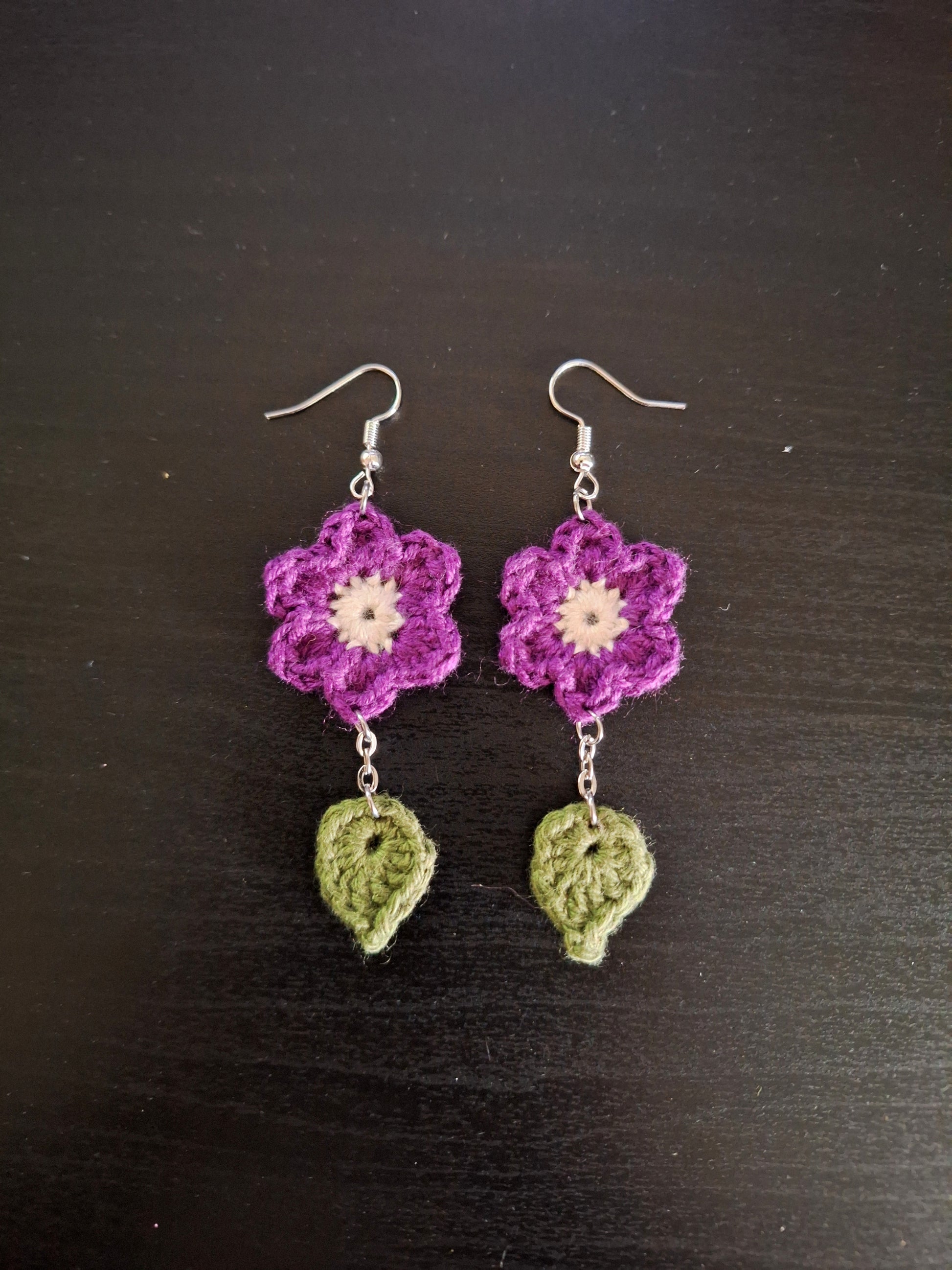 Earrings- Flower and Leaves (Purple)